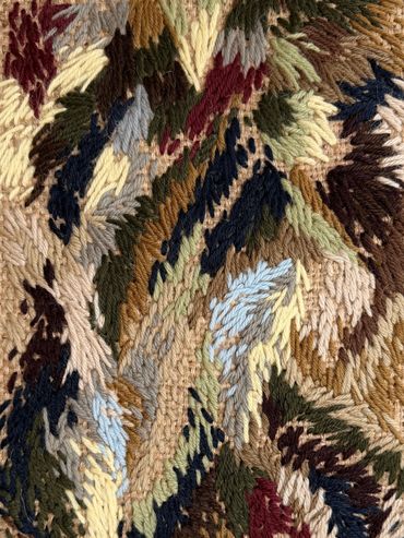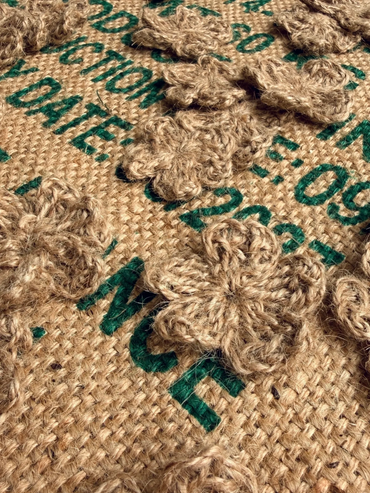 BRODERIE AU FIL DE LAINE SUR TOILE DE JUTE