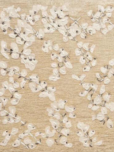 BRODERIE 3D SANS SUPPORT DE PERLES DE VERRE ET DE CRISTAUX SWAROVSKI SUR PARAVENT ET TÊTE DE LIT